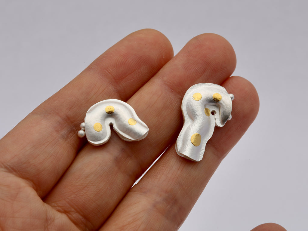 Unique 925 silver pieces with 24k gold dots. Every piece in the Flora and Fauna collection is one of a kind and handcrafted by Hongxia Wang.