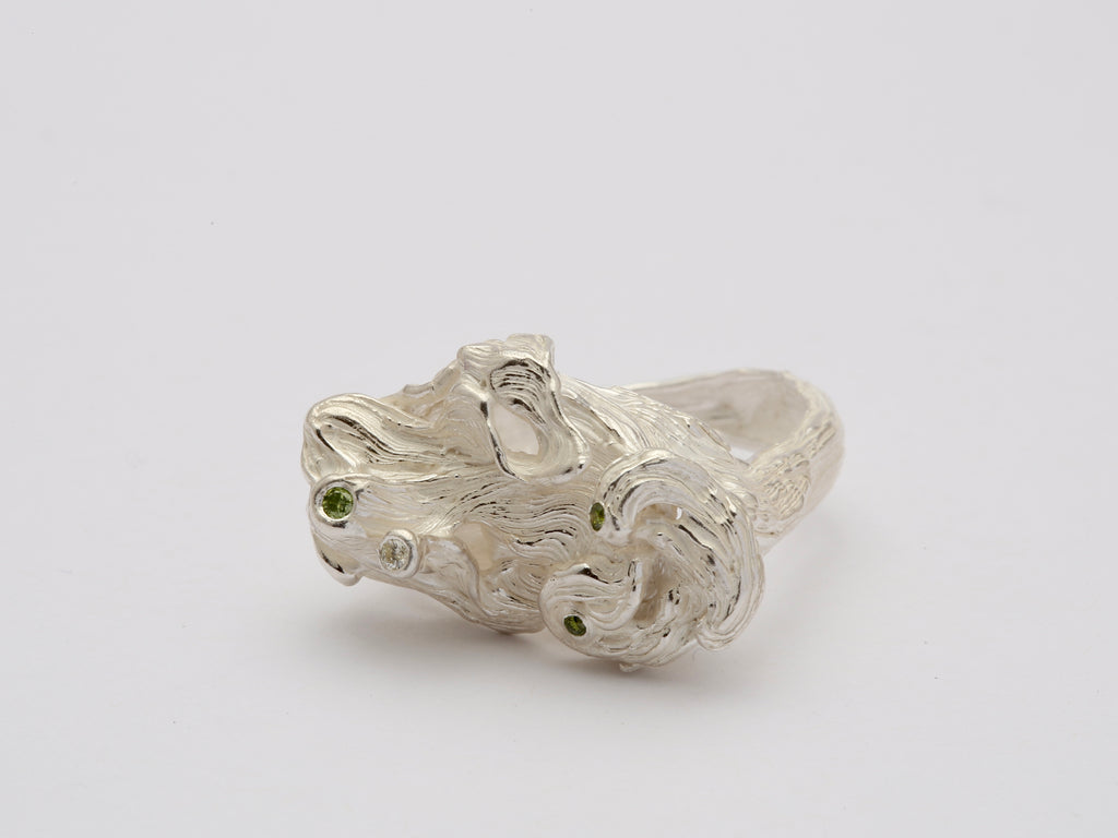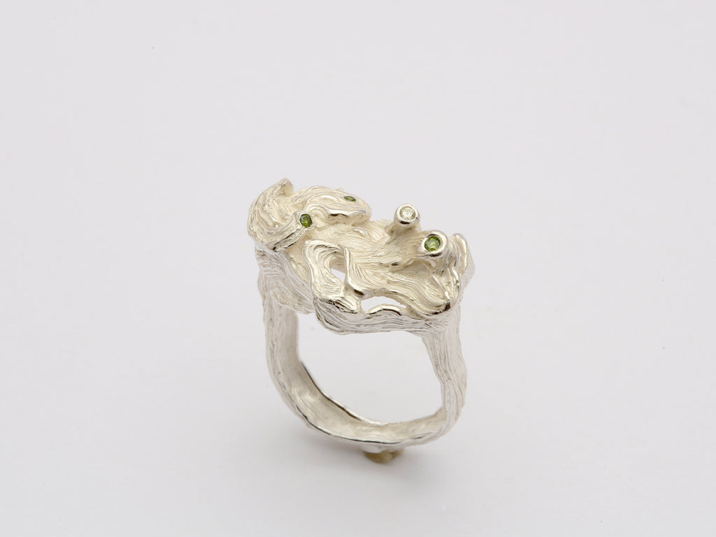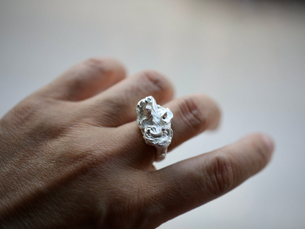 Unique 925 silver ring with diamonds. Processed by Lost Wax casting.